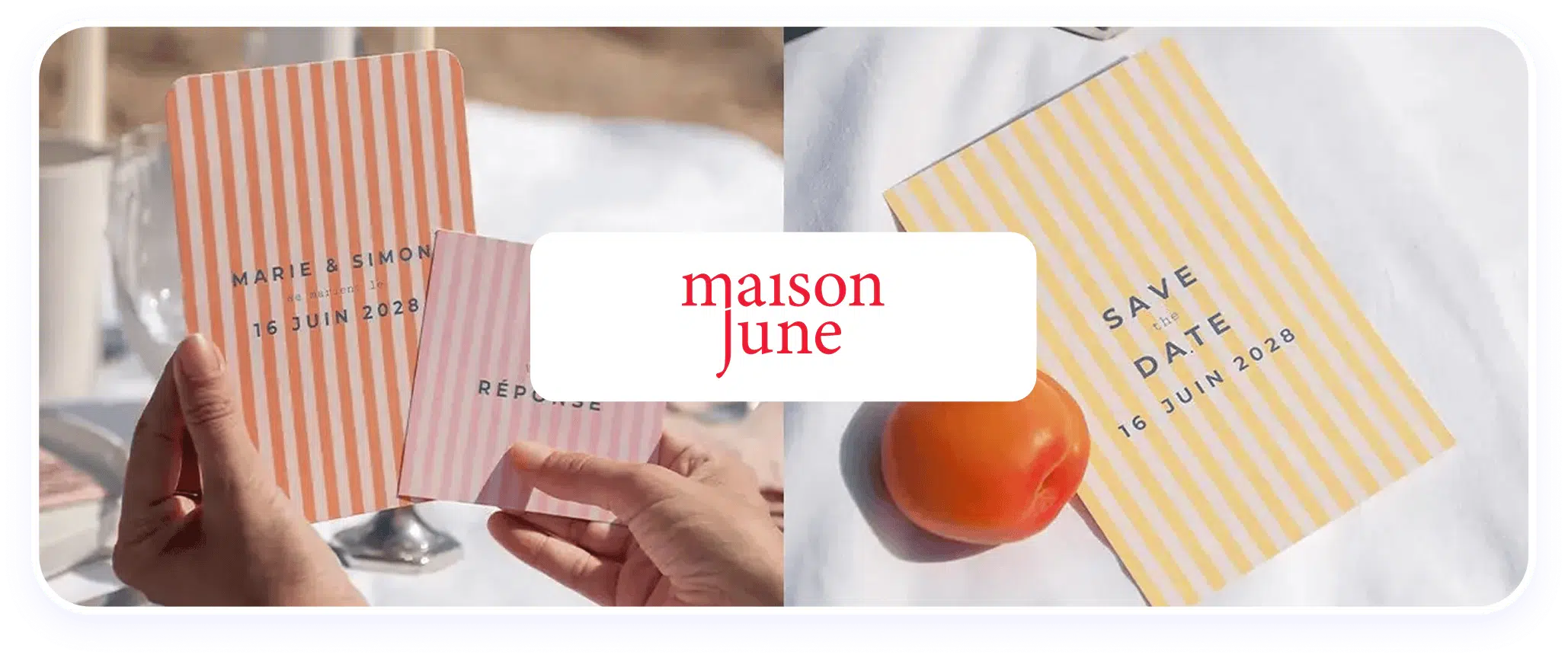 Maison June imagine des faire-part et des objets photo personnalisés pour marquer les grandes étapes de la vie : naissances, mariages, anniversaires et autres moments symboliques.