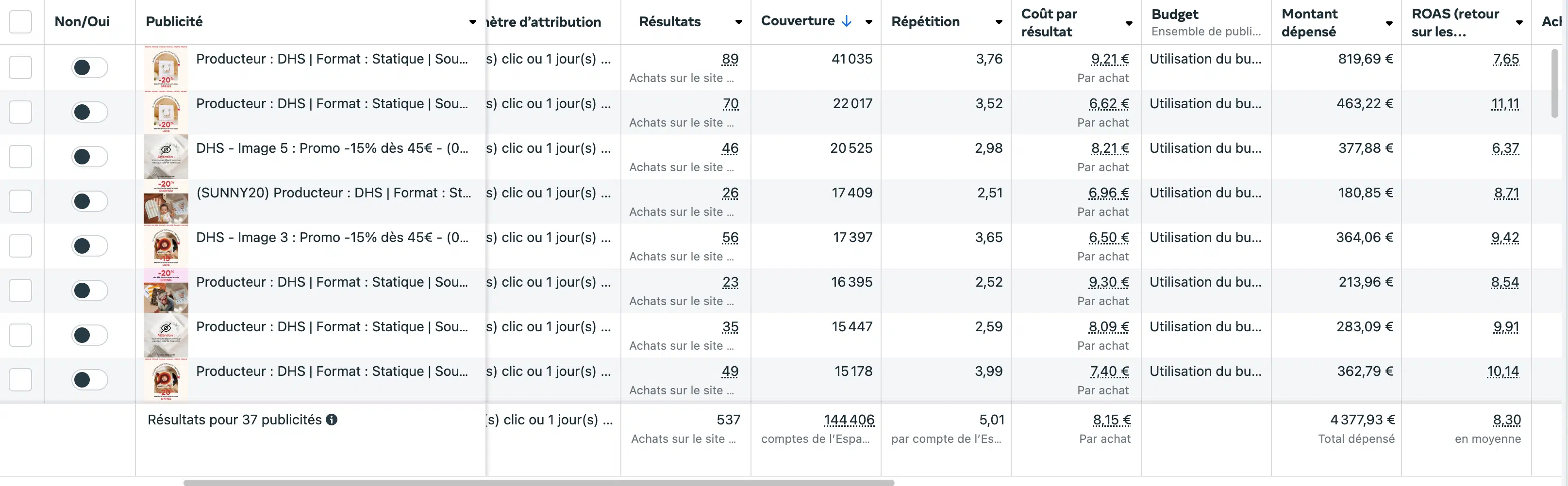 Cette structure nous a permis de mieux comprendre les performances des créatives spécifiquement conçues pour les promotions.