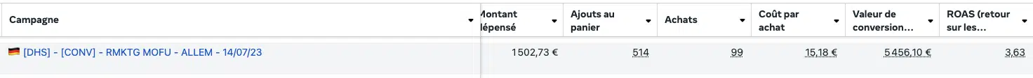Nous avons donc choisi de réallouer ces budgets vers les campagnes ciblant la France, marché plus réceptif à la marque Maison June. Cela a permis de concentrer les investissements sur les audiences les plus rentables.